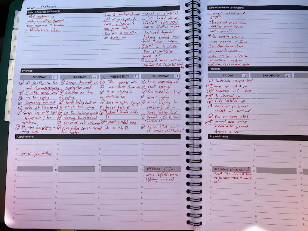 Every week spans two pages, segmented into priorities, appointments, tasks, notes, and expenses—designed to promote focused daily work and long-term goals.